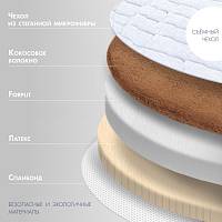 Жесткая  сторона -  100% натуральный материал,  косовая плита с полной латексной пропиткой, прочно скрепляющей кокосовые  волокна,  увеличивающей  долговечность  и придающей  пружинящие свойства.